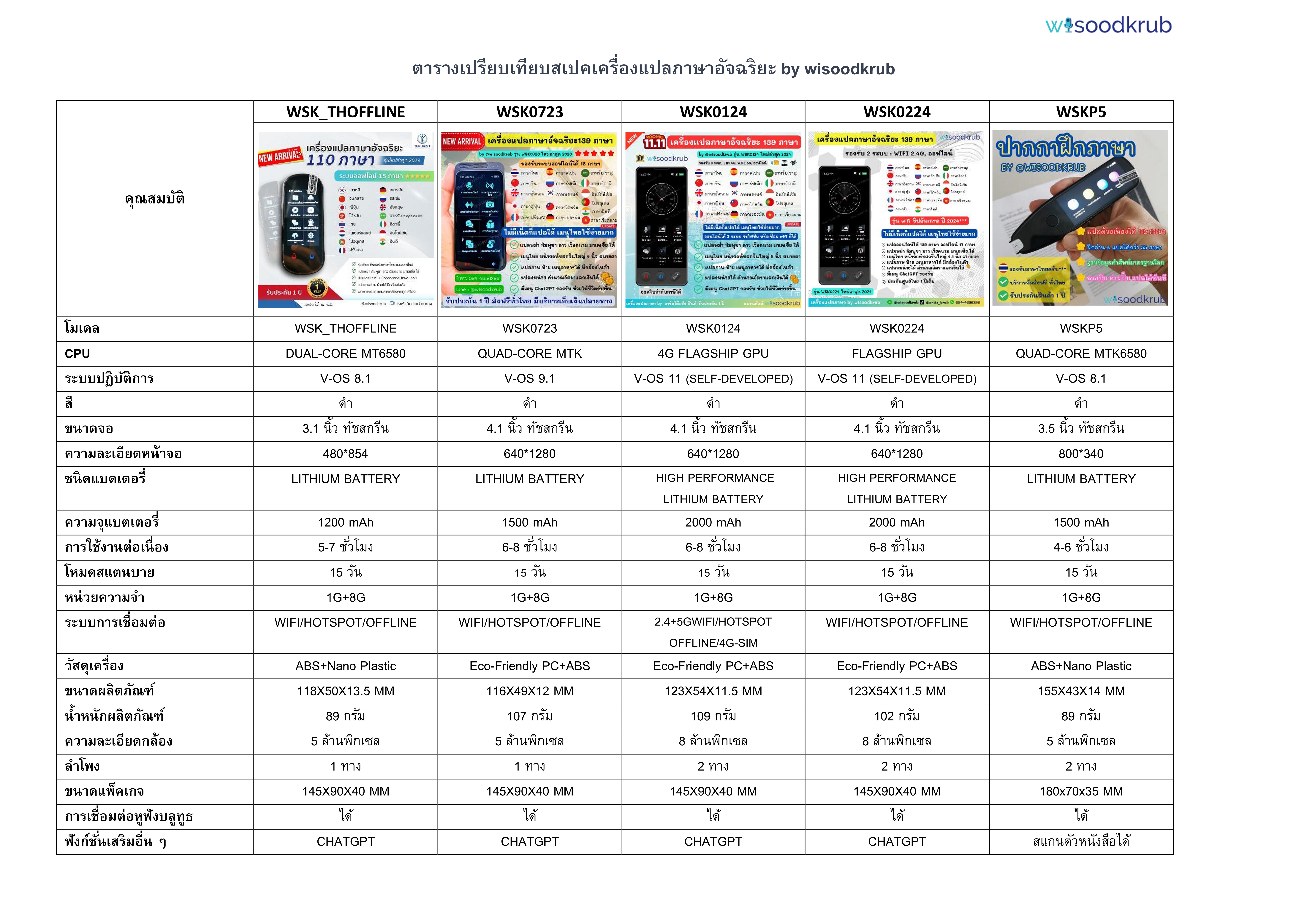 1. ต้องการแบบใส่ซิมได้มั้ย - Top ไปเลยก็ WSK0124 รองรับ 3 ระบบ ไวสุด แปลไวจนนึกว่าล่ามตามประกบ